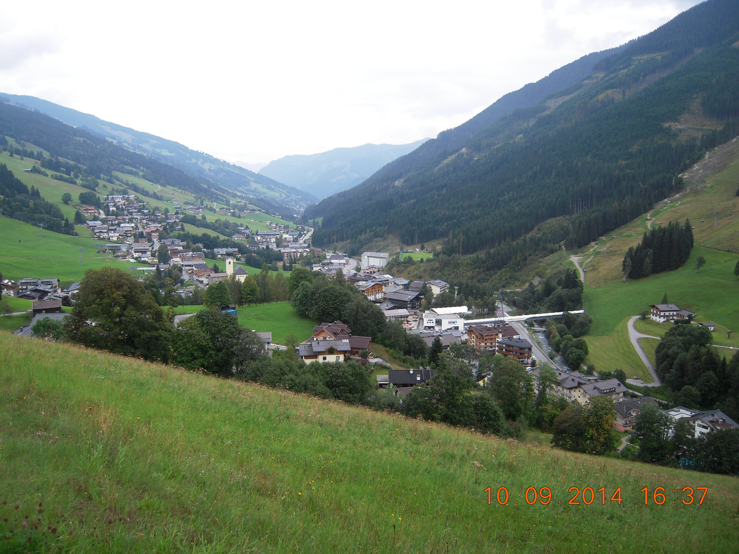 Teimme syyskuun alussa 2014 matkan Saalbachiin, joka sijaitsee Salzburgerlandissa. Finnairin lento lähti 0800 ja Munhenissä otimme lähijunan keskustaan ja sitten junan kohti Salzburgia, reitti vei Rosenheimin, Kufsteinin ja Wörglin kautta Zell am Seehen, josta vaihdoimme bussiin. Junamatka Muncenin päärautatieasemalta Zell Am Seehen vei noin 3:15 ja bussimatka Zell Am Seestä Saalbachiin noin puoli tuntia. Hotellimme Saalbachissa oli Hotel Barbarahof https://www.barbarahof.at/ Hotellin omisti perhe, jossa oli pikkuhiljaa tapahtumassa sukupolvenvaihdos. Nuoret hoitivat pitkälti vastaanoton ja asiat ja isäntä oli paljon seuramiehenä. Isäntä ei ikävä kyllä puhunut paljon englantia, mutta hänen englanti ja meidän Saksa auttoi kyllä saamaan juttua aikaan. Nuoret olivat kielitaitoisia kuten henkilökuntakin. Hotelli oli muutenkin erinomainen, palvelu, ruoka, wellness -alue sekä yleinen meiniki oli oikein hyvää luokkaa. Hotelli tarjoaa erinomaisen aamiaisen, kakkubuffetin päivällä sekä iltaruoan, johon kuuluu salaattibuffetin lisäksi alkupala, pääruoka sekä jälkiruoka. Wellness alueella on useita saunoja, suihkuja jne. Hotellissa on kaikki kohdallaan.