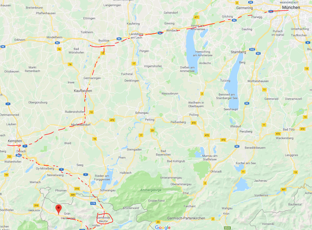 Tannheim sijaitsee lähellä Saksan rajaa läntiseeä Tirolissa. Matkamme Munchenin päärautatieasemalta meni Buhloen, Kemptenin kautta Reutte in Tiroliin, josta hotellin henkilökunta hoitivat meille taksin odottelemaan asemalle, joka vei meidät hotellille. Reuttesta Tannheimiin pääsee myös bussilla noin 50 minuutissa. Junamatka Muchenin päärautatieasemalta vei vähän alle kolme tuntia. Tämän kohteeseen pääsy junalla oli hankalampaa, koska junareittejä oli useampi ja piti vähän nähdä vaivaa, että löytyi sopiva reitti.
